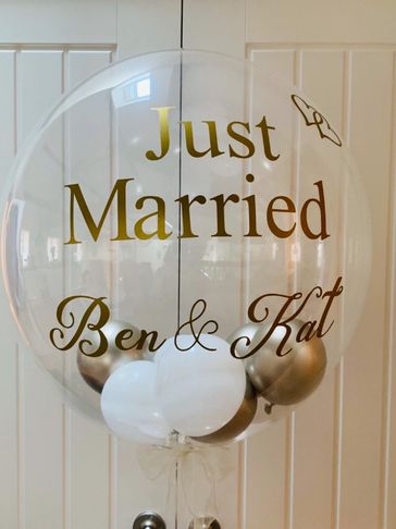 These stunning 24 inch bubbles are fully transparent and can be made in any colour and with any message of your choice. This shows one of our Just Married range.